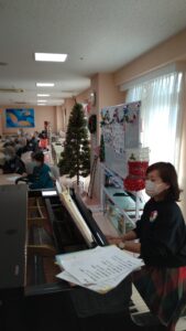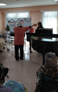 月に1度の『歌のレッスン』の先生も来て下さり先生の演奏に合わせて歌を歌いました。皆さま毎月練習されているのでとてもお上手です。