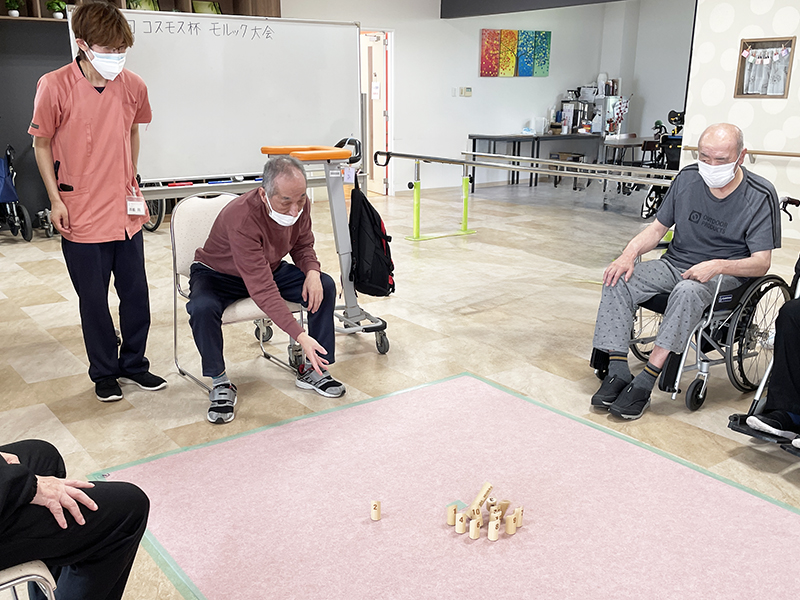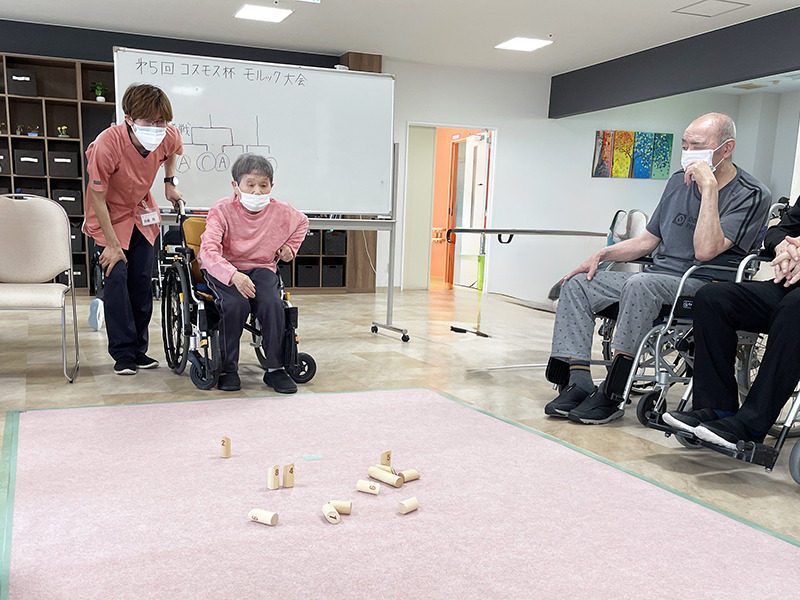 コスモス苑では、スポーツの日に「ミニらいとモルック大会」を開催しました。