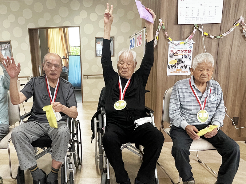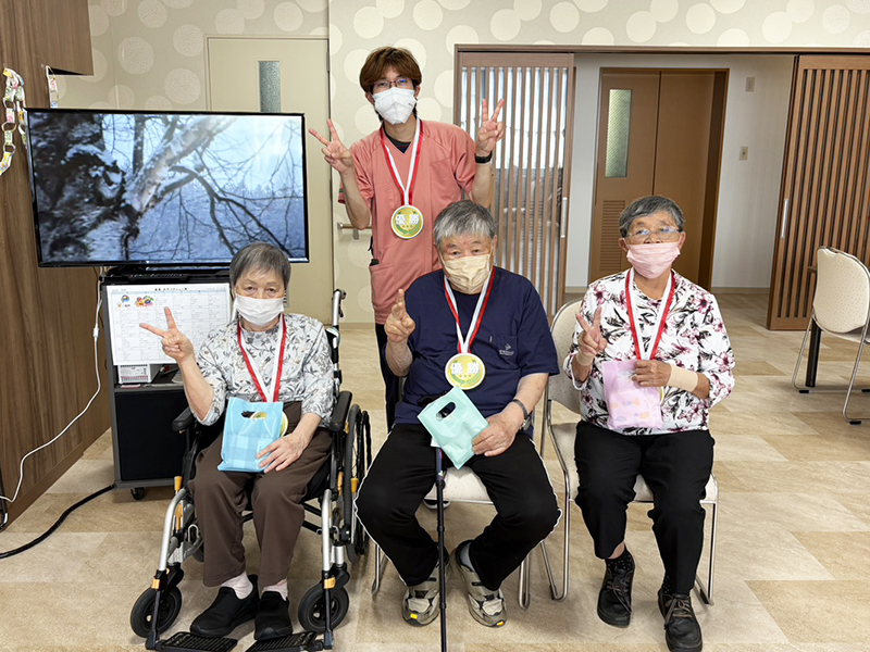 大会後には、入賞者の方々にメダルが贈呈され、皆様の笑顔が溢れる一日となりました。競技を通じて適度な運動とレクリエーションを楽しみ、ご利用者様同士の交流も深めることができました。